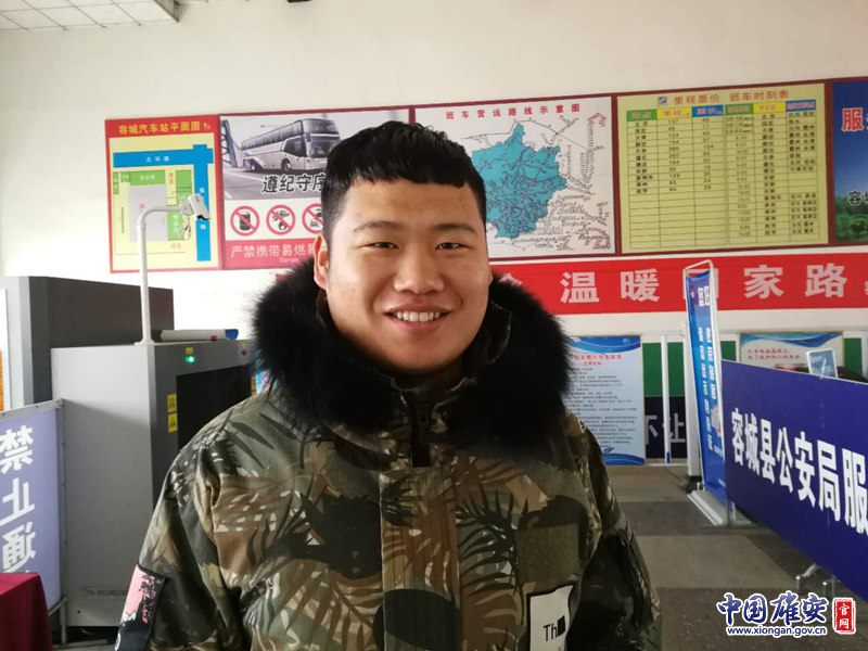今年26歲的莊萬(wàn)發(fā)是容城縣人,他準(zhǔn)備來車站托運(yùn)些雄安特產(chǎn)給北京朋友。說到新年愿望,他笑著說:“希望工作越來越順利,一家人快樂健康。”中國(guó)雄安官網(wǎng)記者孫丹 攝