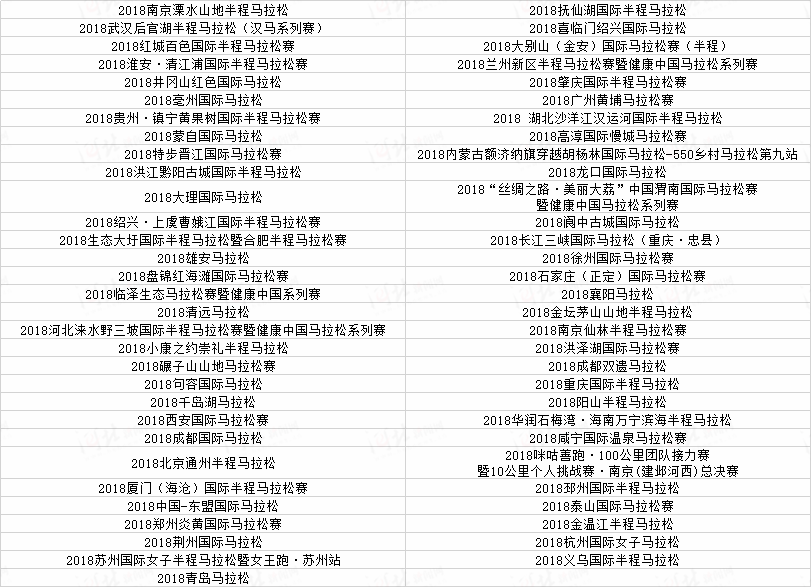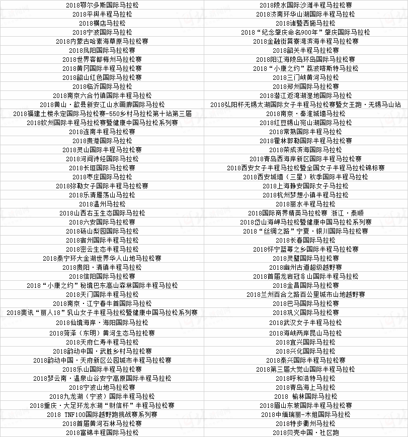 河北省被評為2018中國田徑協會金牌賽事的分別是2018唐山國際馬拉松賽獲、2018秦皇島國際馬拉松、2018衡水湖國際馬拉松賽;被評為2018中國田徑協會銀牌賽事的分別是2018雄安馬拉松、2018河北淶水野三坡國際半程馬拉松賽暨健康中國馬拉松系列賽、2018小康之約崇禮半程馬拉松、2018石家莊(正定)國際馬拉松賽。此外,河北省2018河間詩經國際馬拉松大賽和幽州古道2018超級越野賽被評為2018中國田徑協會銅牌賽事。