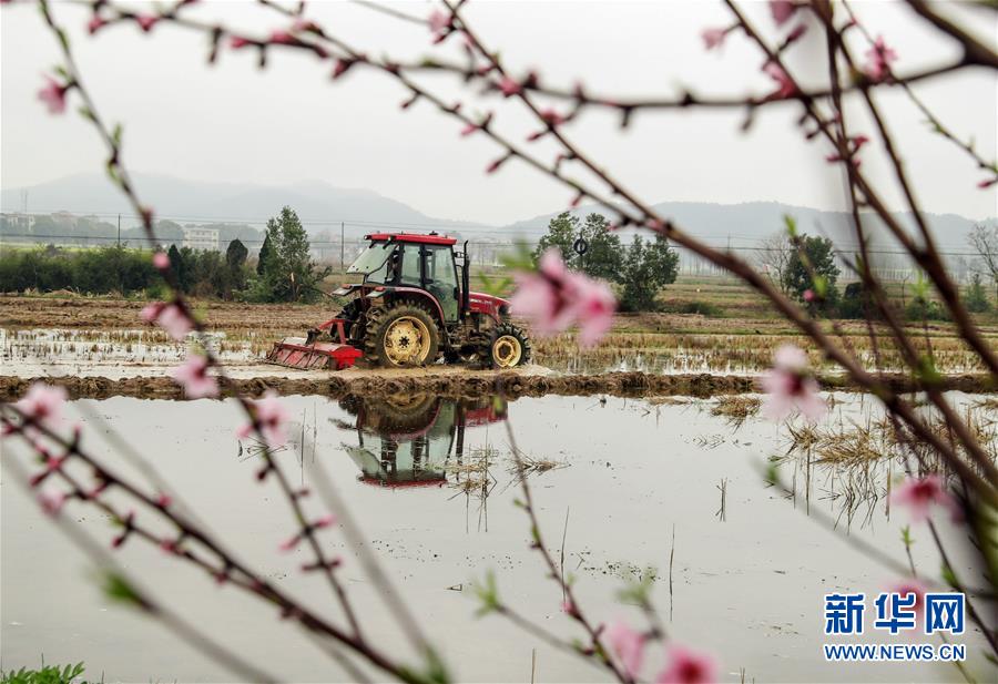 3月14日,江西省撫州市東鄉(xiāng)區(qū)小璜鎮(zhèn)魯家村的農(nóng)民在春意盎然的田間駕駛農(nóng)機勞作。新華社發(fā)(何江華 攝)