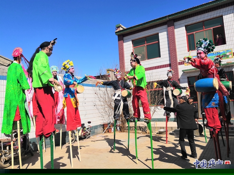 高蹺隊入戶為村民表演。中國雄安官網(wǎng)記者朱偉琳 攝