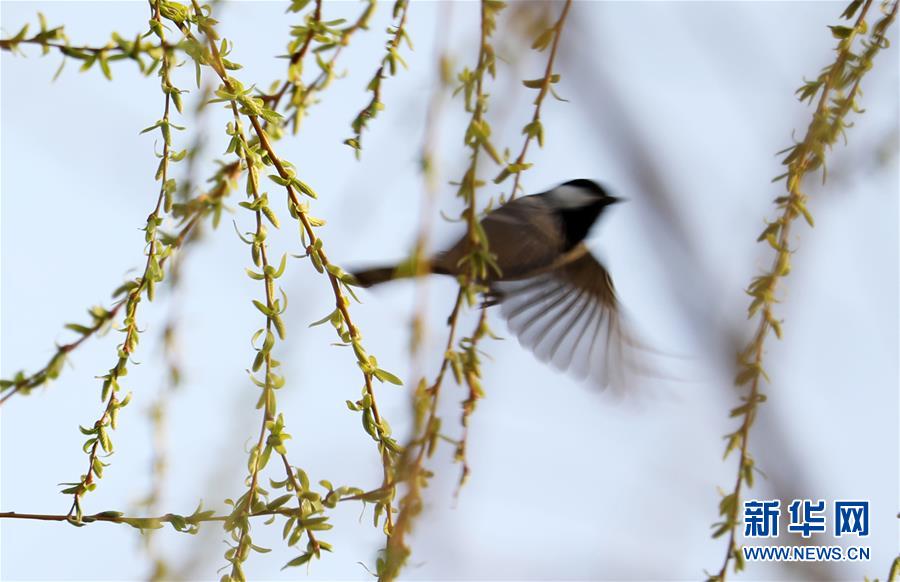 3月16日,在山東省臨沂市郯城縣,小鳥在柳枝上停留嬉戲。隨著氣溫上升,萬物復(fù)蘇,柳枝吐出新芽,透出春天的氣息。新華社發(fā)(張春雷 攝)