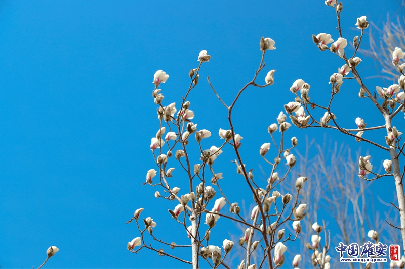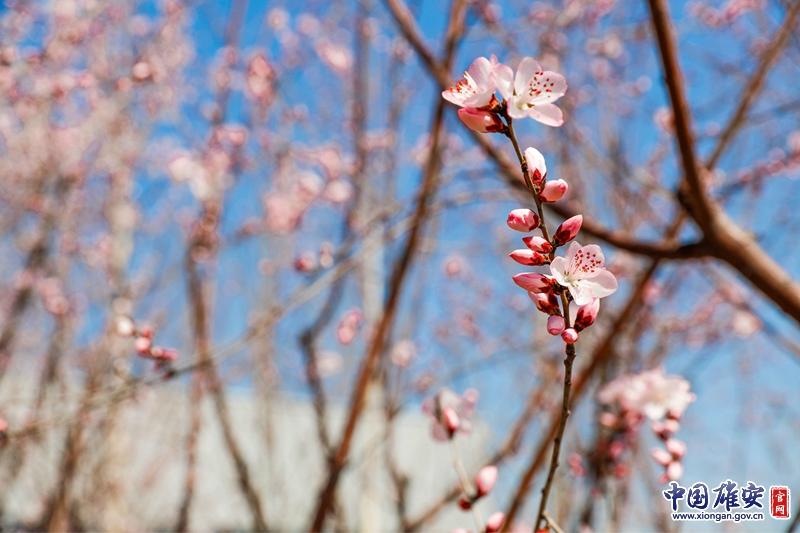 湛藍的天空下,枝頭的花朵顯得格外動人。中國雄安官網記者王京卓 攝