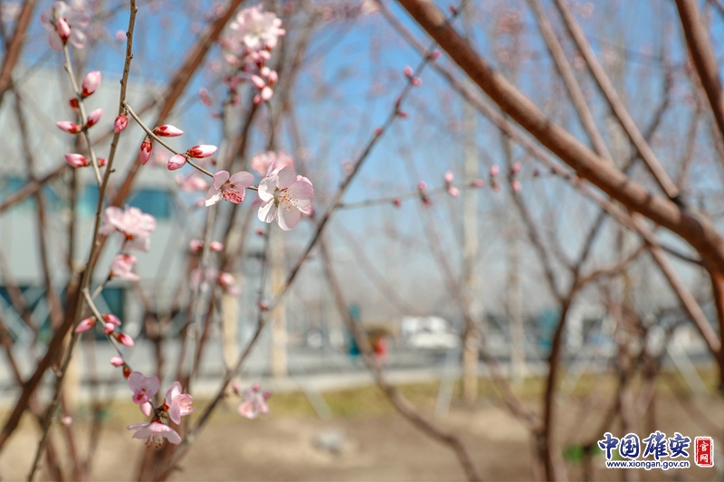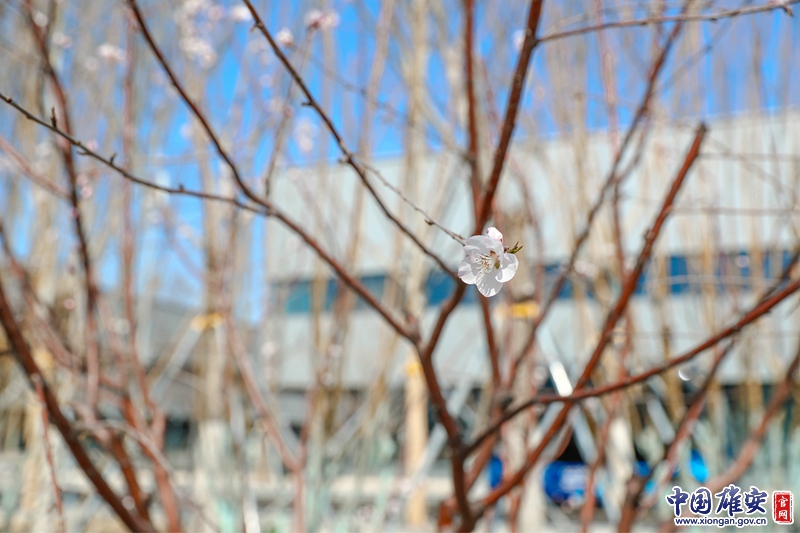 雄安市民服務中心里,枝頭的花朵正開放。中國雄安官網記者王京卓 攝