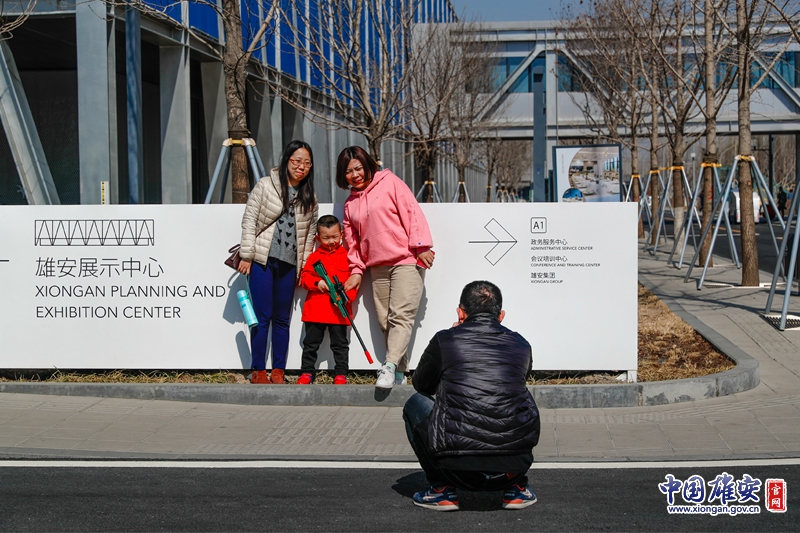 雄安市民服務中心里,游客正合影留念。中國雄安官網記者王京卓 攝