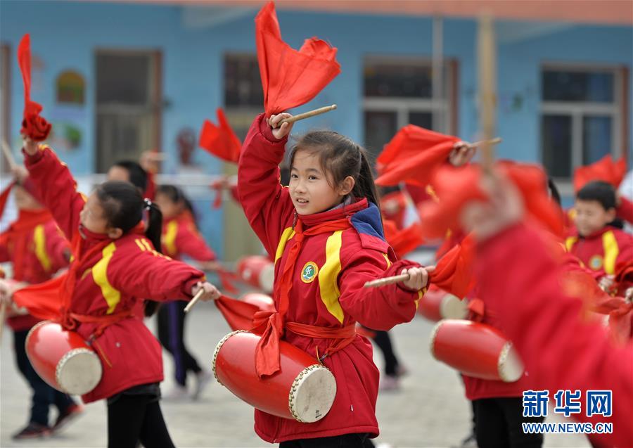 3月20日,百泉小學學生在練習打腰鼓。近年來,河北邢臺經(jīng)濟開發(fā)區(qū)百泉小學積極開展“陽光大課間”系列活動,將傳統(tǒng)腰鼓引入校園,開設校本課程,豐富校園文化生活。新華社記者 朱旭東 攝
