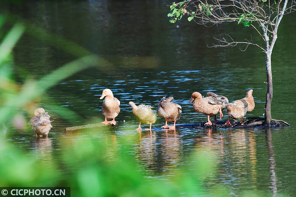 2019年2月19日,海南瓊海嘉積鎮(zhèn)南崛村,鴨子在池塘里嬉戲覓食。CICPHOTO/蒙鐘德 攝