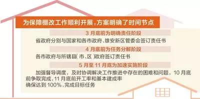 為保障棚改工作順利開展,方案明確了時(shí)間節(jié)點(diǎn)。3月底前為明確責(zé)任階段,省政府分別與國(guó)家和各市政府、雄安新區(qū)管委會(huì)簽訂責(zé)任書。4月底前為任務(wù)分解階段,各市政府與所轄縣(市、區(qū))政府簽訂責(zé)任書。5月至11月底為加速實(shí)施階段,加強(qiáng)督導(dǎo)調(diào)度,及時(shí)協(xié)調(diào)解決工作推進(jìn)中存在的困難和問題,10月底前爭(zhēng)取完成,11月底前開工率和基本建成率確保達(dá)到100%,完成目標(biāo)任務(wù)。