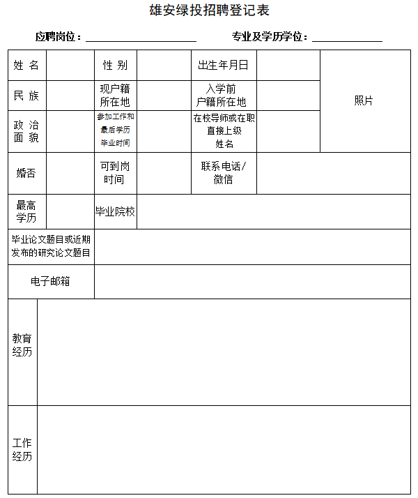 1.應(yīng)聘方式:應(yīng)聘者通過填寫附件(雄安綠投招聘報名表),以電郵方式(xalt2019@sina.cn)提交申請,申請截止時間為2019年3月31日。