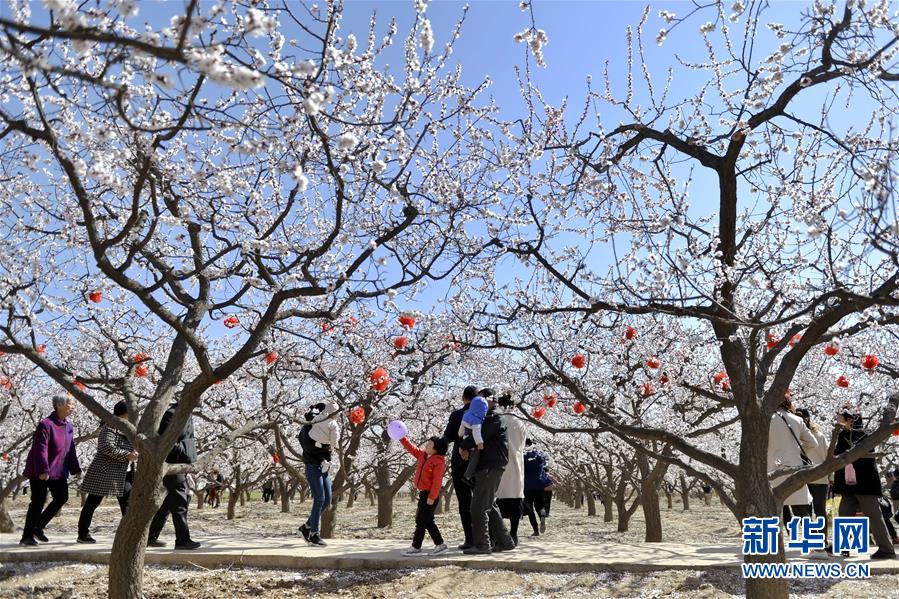3月26日,游客在河北省巨鹿縣西韓莊村杏林內游覽。近日,隨著氣溫回升,河北省巨鹿縣杏花相繼開放,吸引眾多游客前來踏春賞花。新華社記者 牟宇 攝