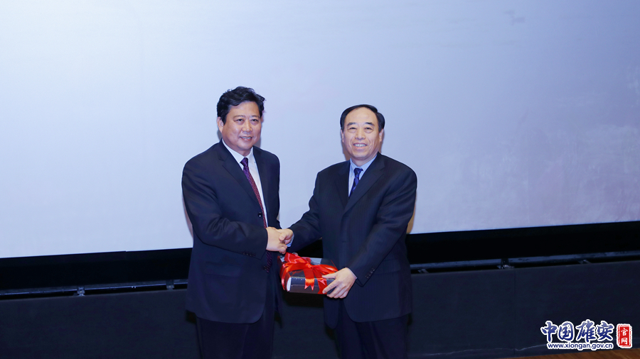 中國國家博物館黨委書記、副館長單威上臺(tái)向雄安·雄州文化藝術(shù)節(jié)組織籌備工作委員會(huì)捐贈(zèng)《中華文明》圖書。中國雄安官網(wǎng)記者毛鶴然 攝