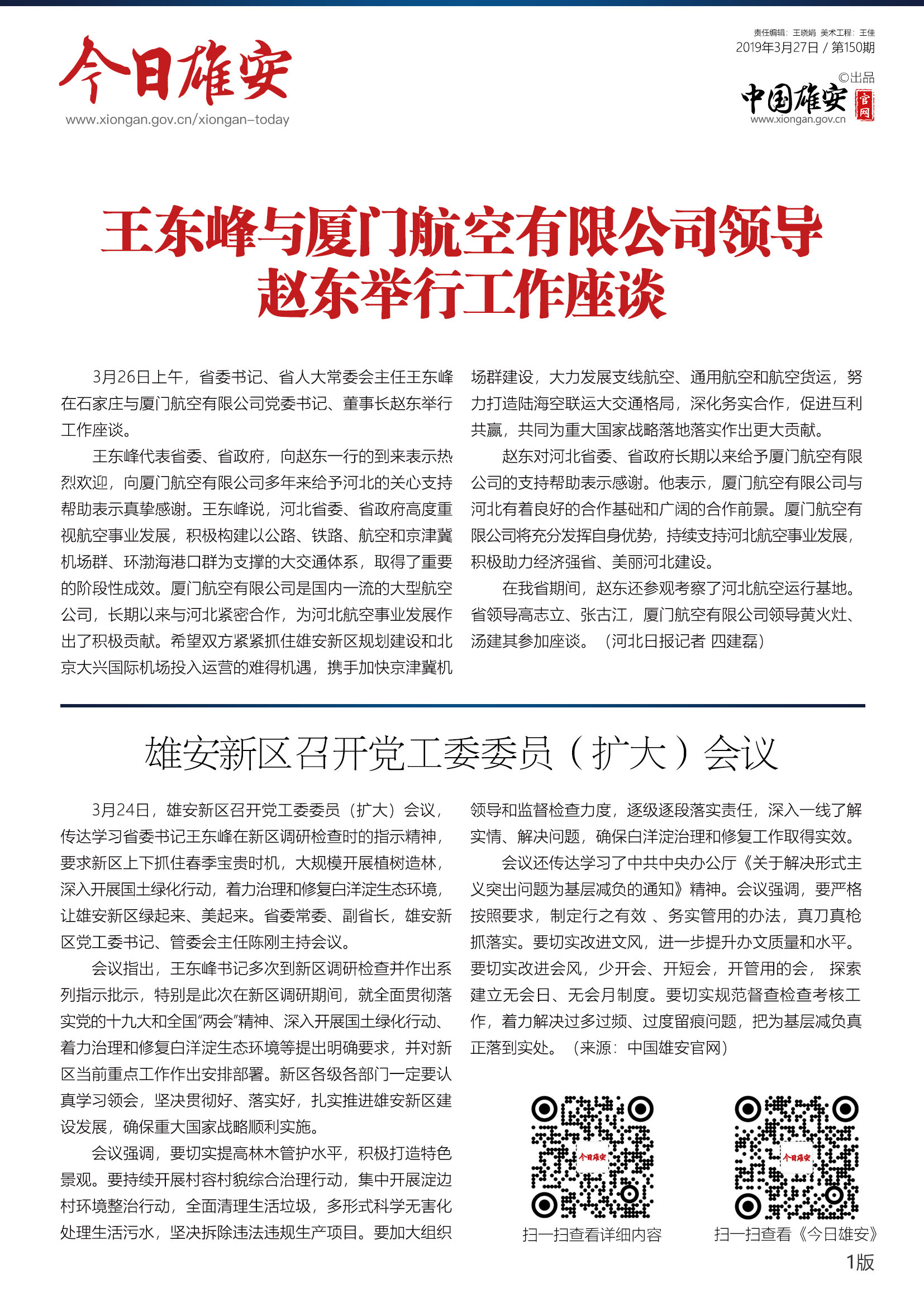 《今日雄安》 2019年3月27日 第150期