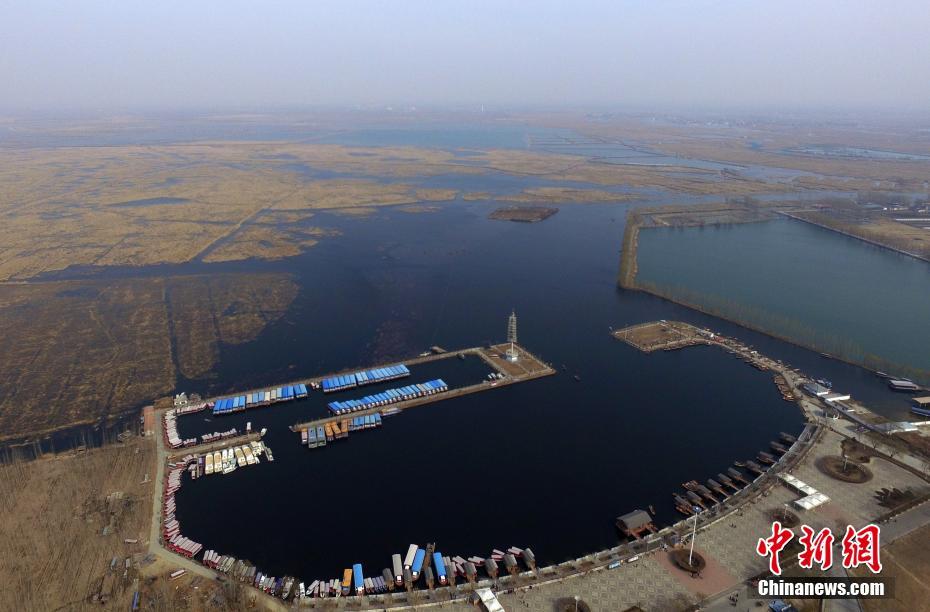 雄安新區即將迎來設立兩周年,3月27日,記者航拍雄安新區地標性建筑與建設場面。其中,白洋淀碧波蕩漾,雄安市民服務中心建成并投入使用,白洋淀引黃泵站啟用。圖為航拍雄安新區安新縣白洋淀碼頭。中新社記者 韓冰 攝