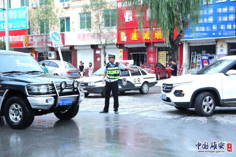 容城縣交警維護交通秩序。容城縣委宣傳部供圖