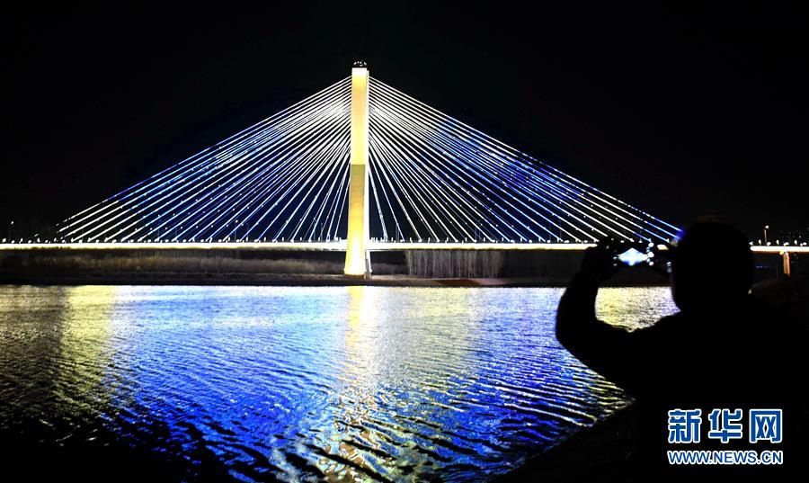 3月28日,一位市民在拍攝燕潮大橋。新華社記者 王曉 攝