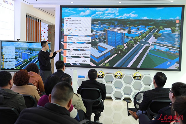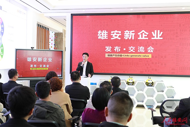 圖為新入駐雄安企業對企業情況進行發布。王紅 攝