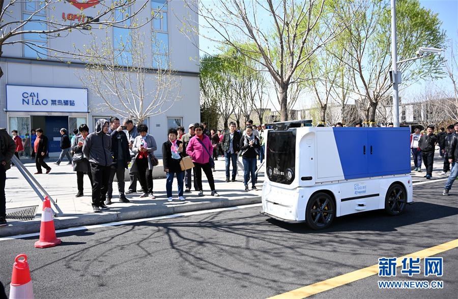 3月31日,快遞無人車在雄安市民服務中心內行駛。近日,由菜鳥網絡自主研發的新能源快遞無人車在河北雄安市民服務中心投入使用。據介紹,該無人車一次最多可以裝載200多個小型包裹,完成從驛站到智能柜的快遞接駁運輸,能感知周邊環境,對行人、車輛等各類動態、靜態障礙物進行避讓。新華社記者 金良快 攝
