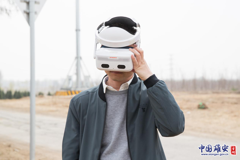 工作人員戴上VR眼鏡感受無人機火情巡查。中國雄安官網記者毛鶴然 攝