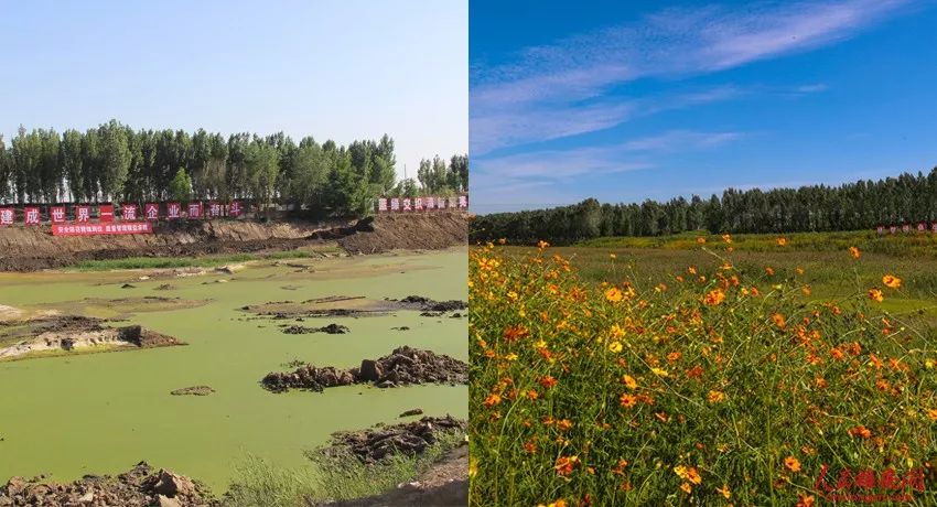 唐河污水庫修復前后(左圖為中交一公局供圖,右圖王京卓攝)