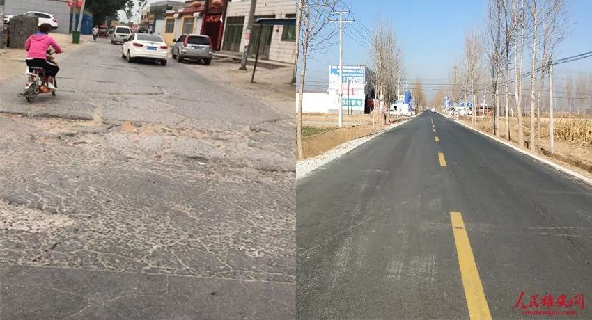 容賈路翻修前后(左圖容城縣交通局供圖,右圖王紅攝)