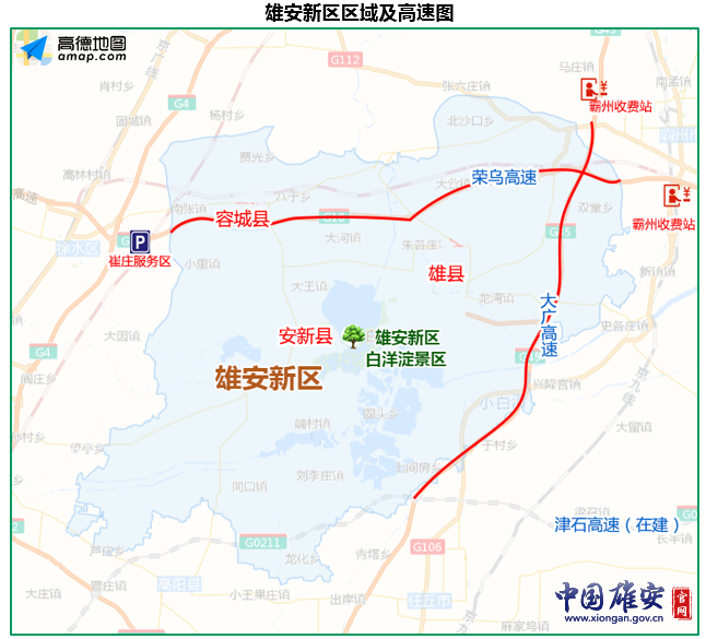 在雄安新區周邊地區,高德地圖交通大數據預測,4月5日1:00至3:00為高速出程擁堵高峰,易擁堵緩行的高速有G2京滬高速、S12機場高速、G1京哈高速、G45大廣高速等;預計4月7日為返程擁堵高峰,15:00至17:00擁堵程度較高,返程易擁堵緩行的高速有G4京港澳高速、廊涿高速、S52保阜高速等。