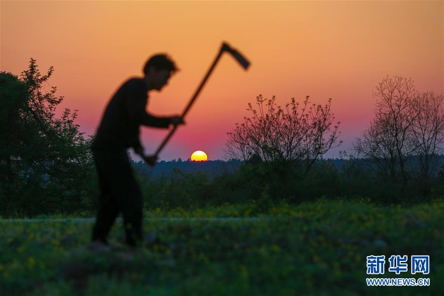 4月5日,在江西省峽江縣馬埠鎮夏塘村,農民在田里勞作。 清明時節,各地農民搶抓農時開展農事作業。新華社發(陳福平 攝)