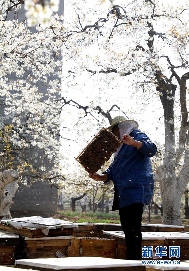 4月5日,在河北石家莊趙縣謝莊鄉(xiāng)安家莊村,農(nóng)民利用蜜蜂為梨花授粉。 清明時(shí)節(jié),各地農(nóng)民搶抓農(nóng)時(shí)開展農(nóng)事作業(yè)。新華社發(fā)(梁子棟 攝)