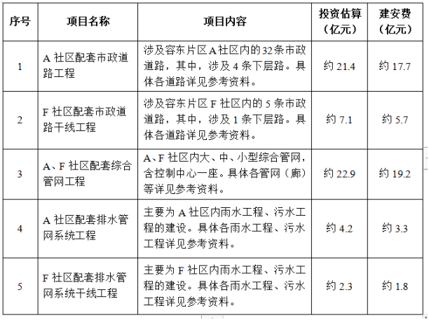 項(xiàng)目概況:本次實(shí)施建設(shè)的是容東片區(qū)中A社區(qū)市政基礎(chǔ)設(shè)施工程,包括市政道路工程、綜合管網(wǎng)工程、排水管網(wǎng)系統(tǒng)工程,總投資約38.5億元,建安費(fèi)約31.9億元。