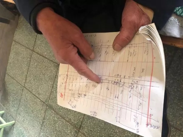 姜琳祥手繪的造船圖紙。王樂攝