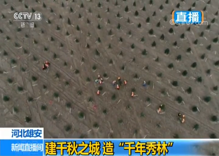 我們現在看到的,是位于河北雄安新區容城縣沙河營村的造林現場,三五成群的護林工人,正在將一棵棵苗木栽種在這片希望的田野上。