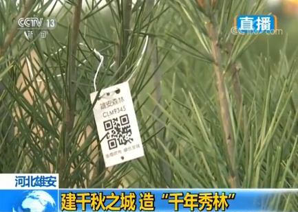 2017年11月,雄安新區“千年秀林”工程栽下了第一棵樹,目前已完成造林11萬畝,植樹1000多萬株,這里栽種的每棵樹上都掛有一張“二維碼”,掃描這些樹木的“身份證”,什么品種、從哪來、由誰栽種一目了然。隨著后期管理的深入,它里面的信息也會不斷完善,除草、澆水、修剪等信息將不斷加入,這樣不僅便于管理,還能對樹木成長的全過程進行監控。