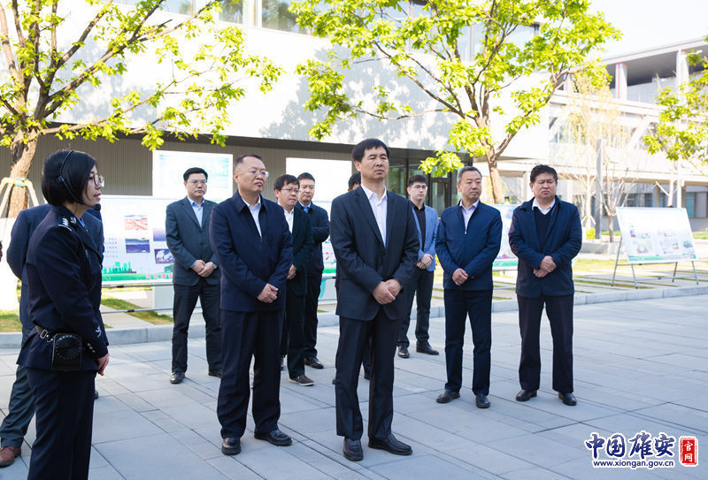 雄安新區黨工委副書記、管委會常務副主任,雄安集團黨委書記、董事長田金昌與新區領導干部觀看宣傳展板。中國雄安官網記者毛鶴然 攝