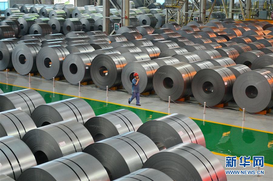 河鋼集團(tuán)邯鋼公司的工作人員在鋼卷存放庫區(qū)巡視(2016年6月23日攝)。新華社記者 牟宇 攝