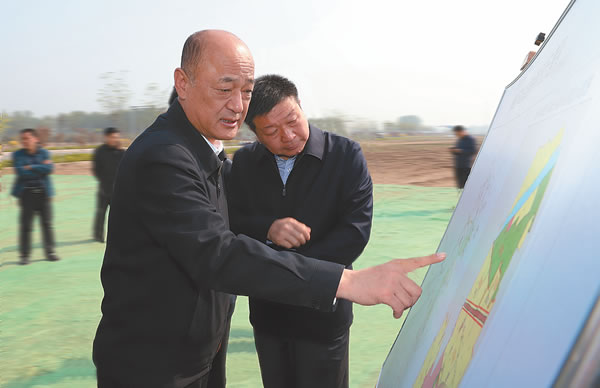 4月16日,保定市委書記聶瑞平就環雄安新區造林綠化工作調研檢查。這是聶瑞平在清苑區與雄安新區交界處,向有關負責同志了解造林綠化工作情況。記者劉春茂 攝