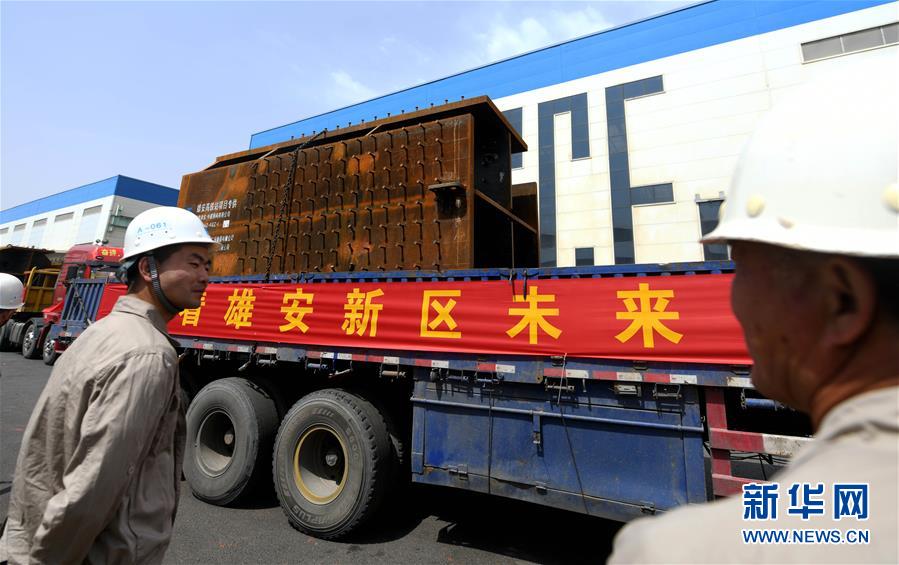 4月18日,裝載雄安站站房項目首批鋼構件的貨車從廠區出發前往雄安。當日,北京至雄安新區城際鐵路雄安站站房及相關工程主體結構工程首批鋼構件從中建鋼構天津有限公司發往雄安新區,用于主體結構工程建設。中建鋼構天津有限公司參與了該項目6.7萬噸鋼結構的制造任務。新華社記者 岳月偉 攝