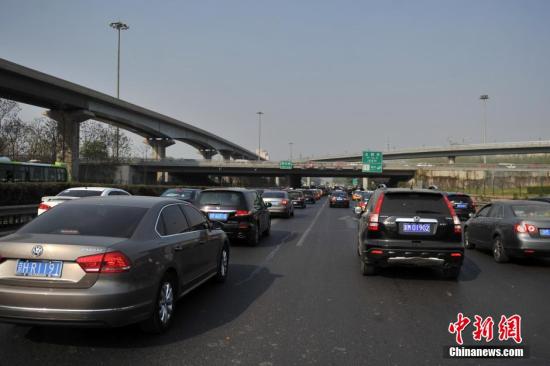 資料圖:高速路上車流集中。記者金碩 攝