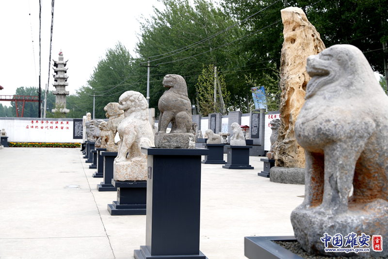 張崗分展區(qū)展出的仿古石雕作品。中國雄安官網(wǎng)記者李鑫 攝
