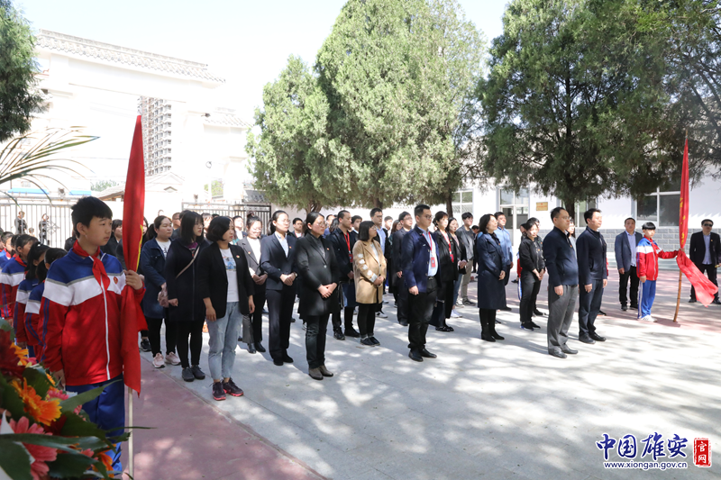 活動(dòng)第一站來(lái)到雄縣米家務(wù)鎮(zhèn)烈士陵園,雄縣縣委副書(shū)記徐同柱主持,并介紹了陵園情況,全體人員肅立默哀,少先隊(duì)員代表敬獻(xiàn)花籃,緬懷劉秉彥、曠伏兆兩位將軍及曾經(jīng)奮戰(zhàn)過(guò)的革命先烈。