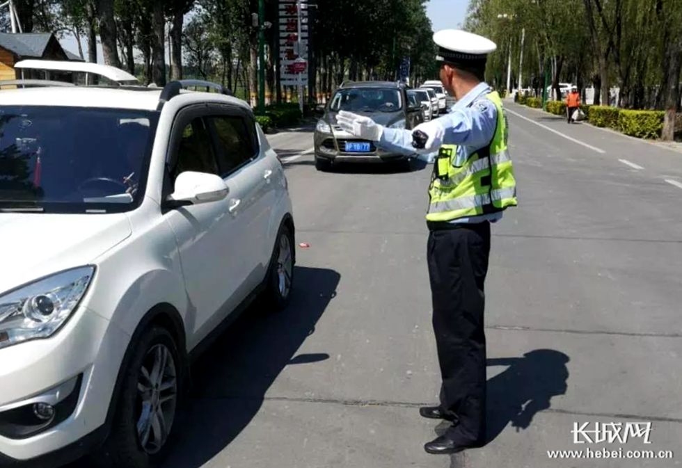 5月1日,在安新縣白洋淀景區(qū),執(zhí)勤交警在指揮交通。霍少軒 攝