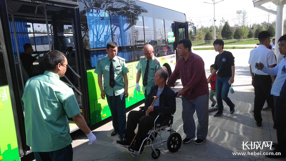 5月1日,在雄安市民服務(wù)中心P1停車場(chǎng),保定公交公司工作人員為行動(dòng)不便的人提供幫助。霍少軒 攝