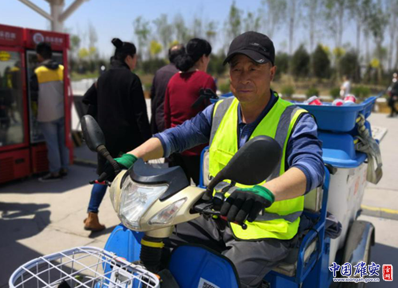 今年56歲的容城人王占軍是雄安市民服務中心P1停車場的一名環衛工人,負責區域內的地面清潔和垃圾桶清理轉運工作。“五一”期間,為保證停車場垃圾桶隨滿隨清,王占軍騎保潔車一天需要繞停車場十余趟。雖然忙起來顧不上吃飯,但是他并不覺得有什么。
