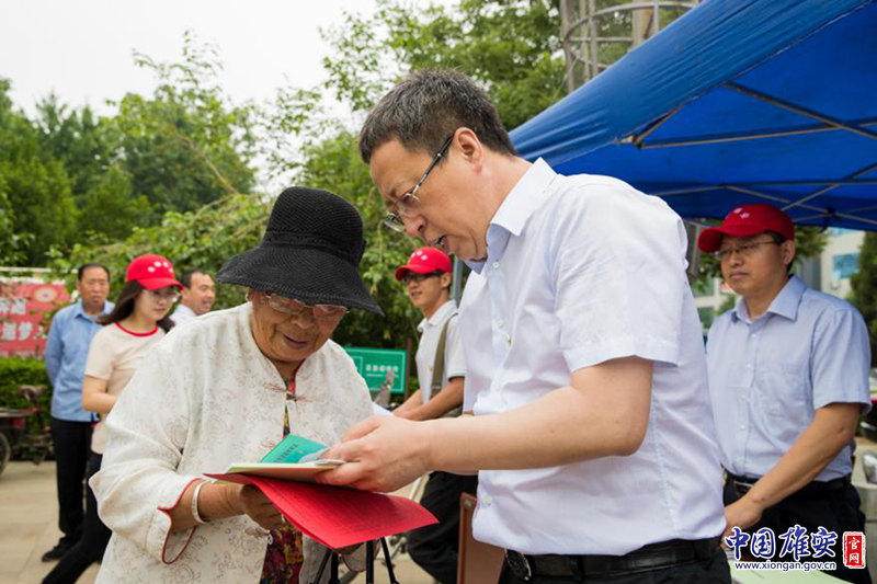 省生態(tài)環(huán)境廳環(huán)境監(jiān)察專員、雄安新區(qū)生態(tài)環(huán)境局局長(zhǎng)曹海波在給群眾講解環(huán)保知識(shí)。中國(guó)雄安官網(wǎng)發(fā)