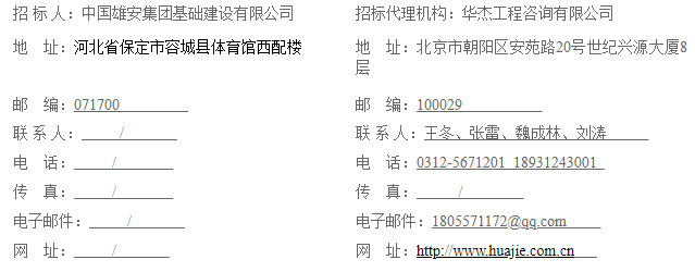 本次招標公告同時在中國招標投標公共服務平臺(http://www.cebpubservice.com/)、河北省招標投標公共服務平臺(http://www.hebeieb.com.cn )、雄安新區公共資源交易服務平臺(http://www.xaprtc.com/)上發布。