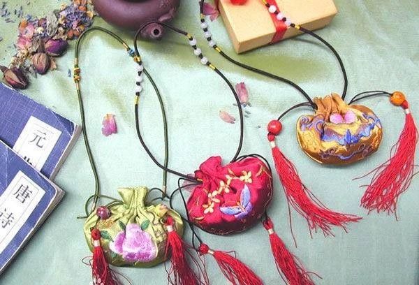 騎父稚子香囊佩,粉俏媳婦把景擷。