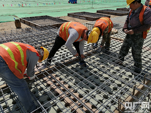 工人在緊張施工中(記者佟亞濤 攝)