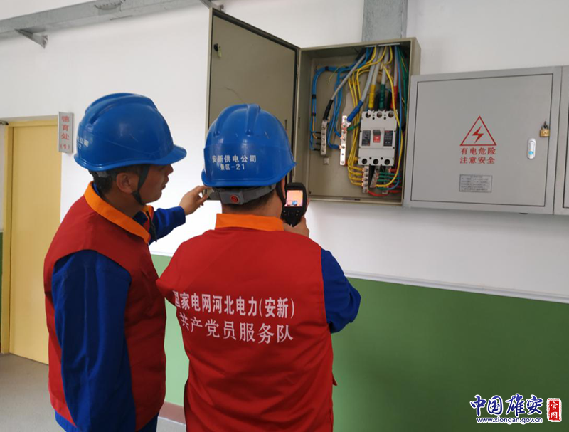 高考前一天,國家電網(wǎng)河北電力(安新)共產(chǎn)黨員服務(wù)隊(duì)走進(jìn)學(xué)校檢測(cè)電路系統(tǒng)。中國雄安官網(wǎng)發(fā)