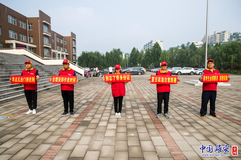 “我來(lái)提醒你,高考這些事情要牢記!”雄安新區(qū)志愿者為考生送上貼心提示。中國(guó)雄安官網(wǎng)記者馬夢(mèng)迪 攝