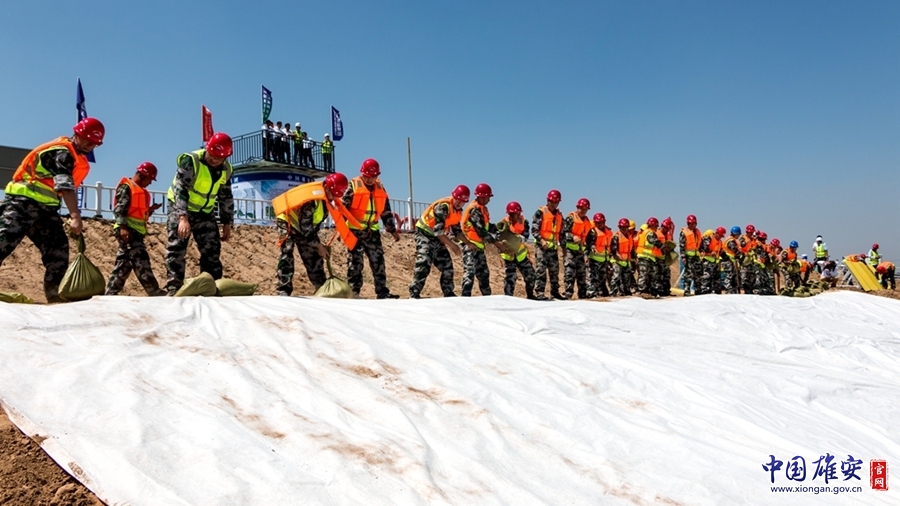 南拒馬河防洪治理工程現(xiàn)場進行防汛演練。中國雄安官網(wǎng)記者馬夢迪 攝