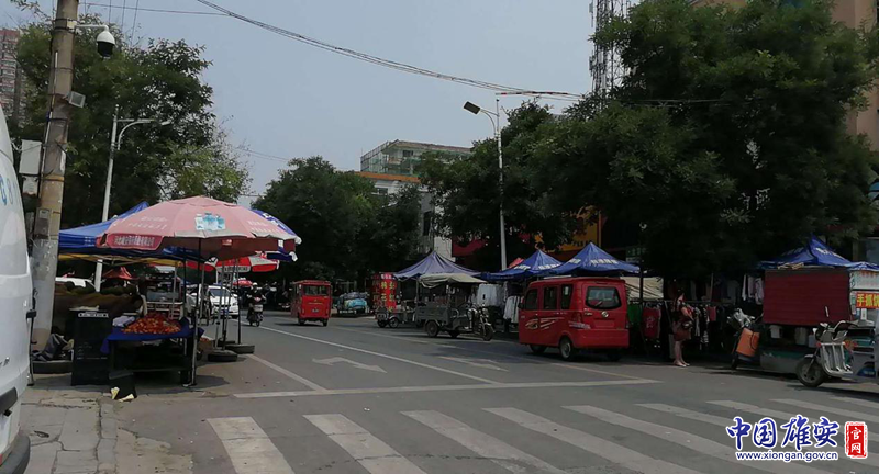 3、容城縣縣城金臺西路、金容中街占道經營嚴重,道路兩旁門店和小商販在人行便道和非機動車道擺攤經營,還存在電動小三輪亂停亂行現象,影響來往行人、車輛通行。