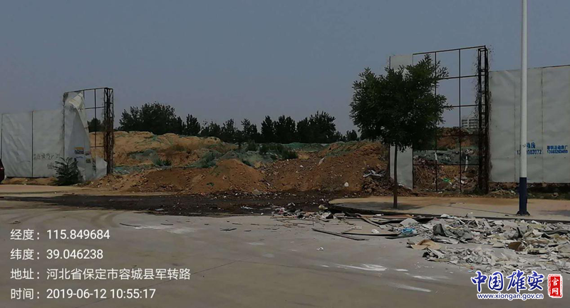 4、容城縣縣城軍轉路到澳森南大街交叉口,發現大量建筑垃圾、生活垃圾,并存在露天土堆未覆蓋,雜草叢生、殘垣斷壁等現象。