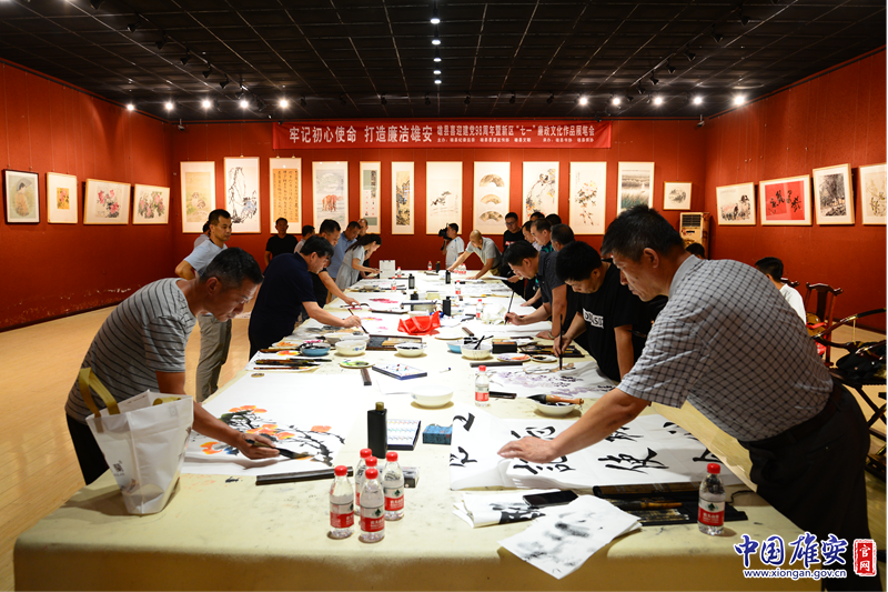 5. 6月17日,雄安新區雄縣舉辦“牢記初心使命,打造廉潔雄安”喜迎建黨98周年暨新區“七一”廉政文化作品展筆會。20余位書畫創作者以黨史、詩詞、菊、竹、蓮、荷等書畫為主要創作題材在現場揮毫潑墨。